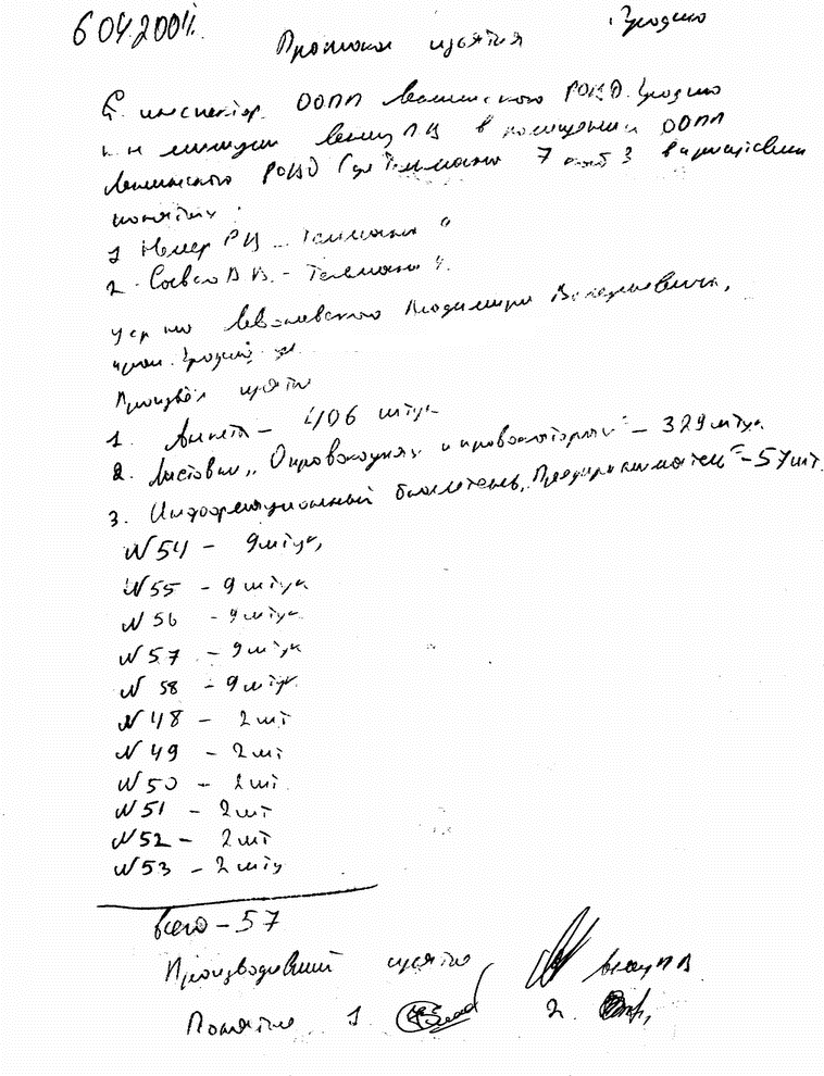 В 15.20 Сотрудники милиции отпустили Владимира, изъяв все находившееся у него бюллетени, листовки и анкеты без законных на то оснований.